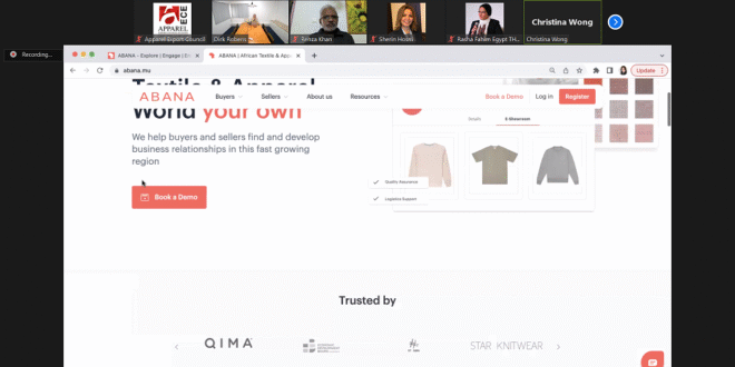 The online platforms have recently become one of the most effective promotional means that work on marketing products, especially apparel and textiles.. Therefore, Apparel Export Council of Egypt and Egypt Textiles and Home Textiles Export Council organized a virtual webinar to present ABANA | African Textile & Apparel Marketplace which specialized in apparel and textile products.
